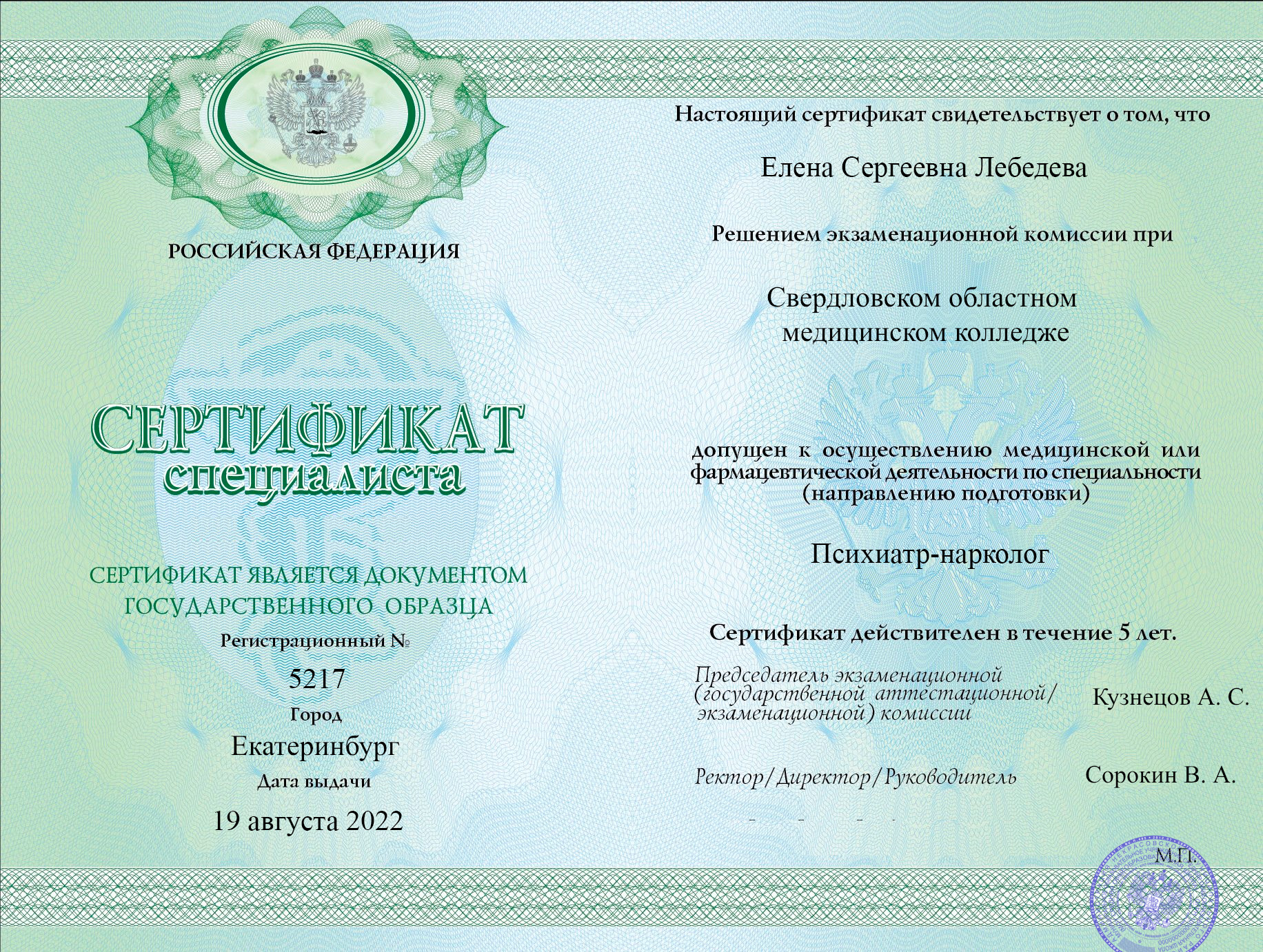 Елена Сергеевна Лебедева врач нарколог клиники доктора Стукаловой в Успенском